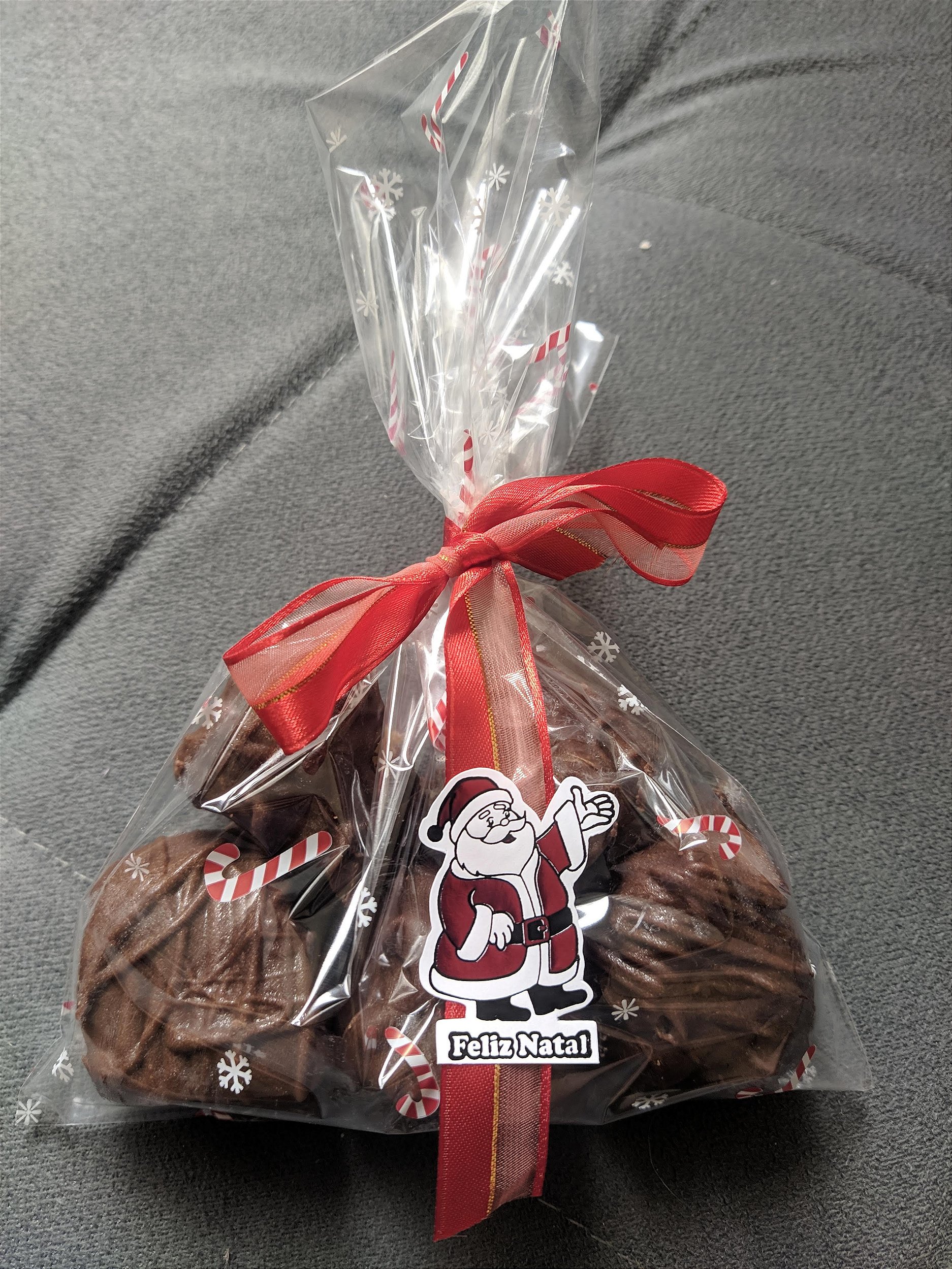 150g de panettone cortado aos cubos com recheio de creme de natas banhados em chocolate;